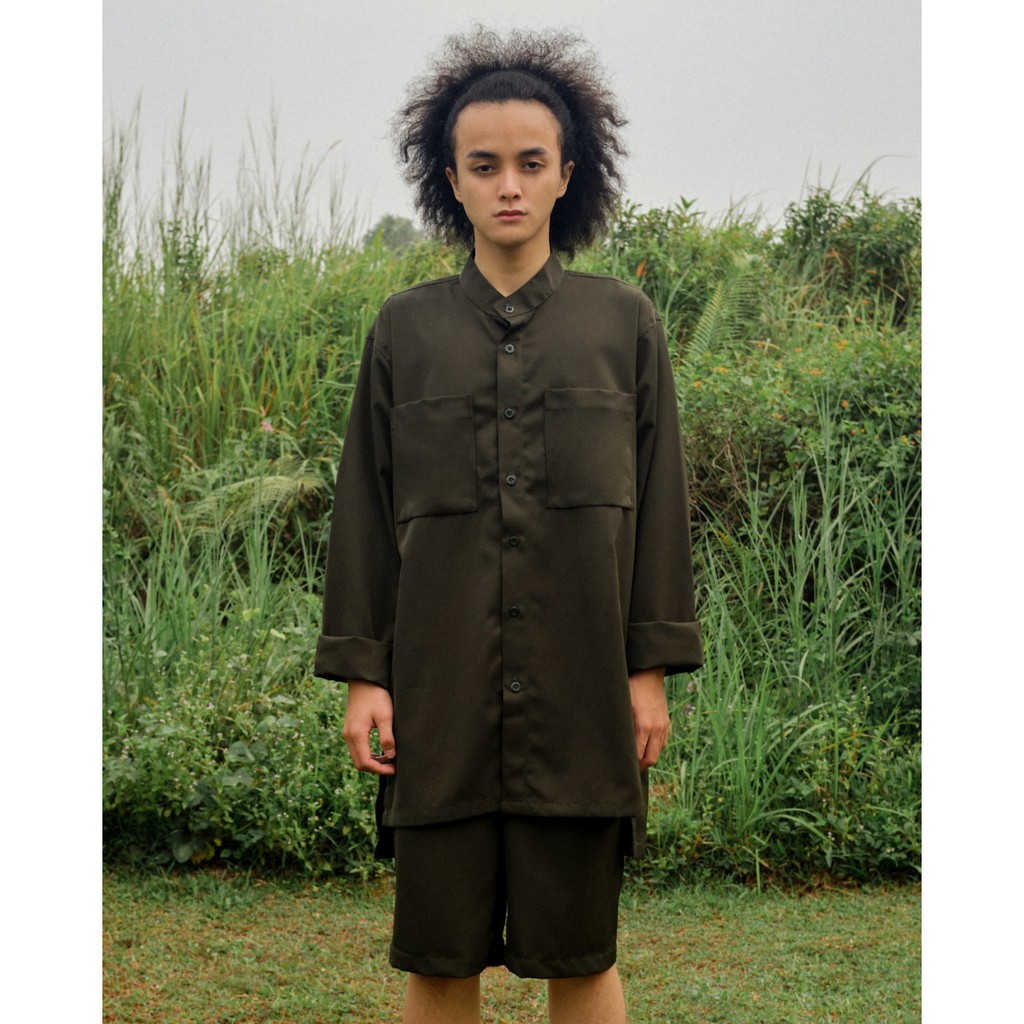 SVH | MIDAM SHIRT IN DARK GREEN | Kemeja Wanita | Kemeja Hijau Gelap Wanita | Kemeja Lengan Panjang Wanita | Kemeja Unisex | Kemeja Santai | Kemeja Formal Wanita | Fashion Wanita | High end Brand | Fashion Show | Couture | Kemeja Oversize