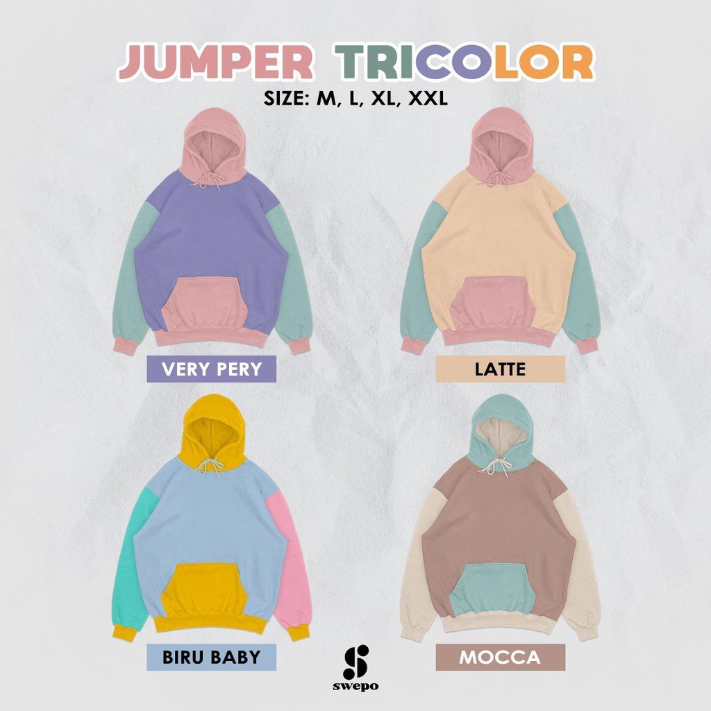 SWEPO Hoodie Jumper Tricolor Size M - XXL (Pria & Wanita)