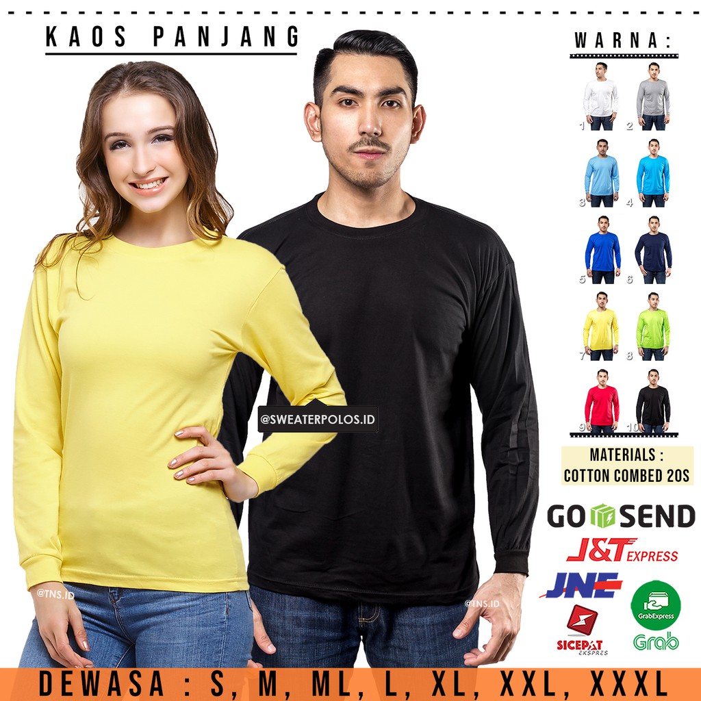 SWEPO Kaos Lengan Panjang Combed Pria Dan Wanita Size Dari S - XXL