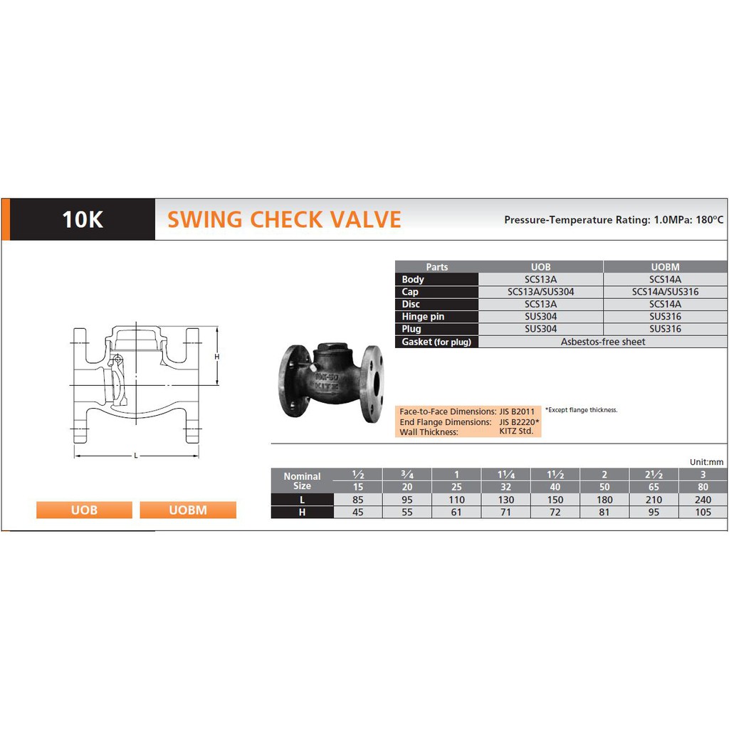 SWING CHECK VALVE KITZ UOB SS304 2"