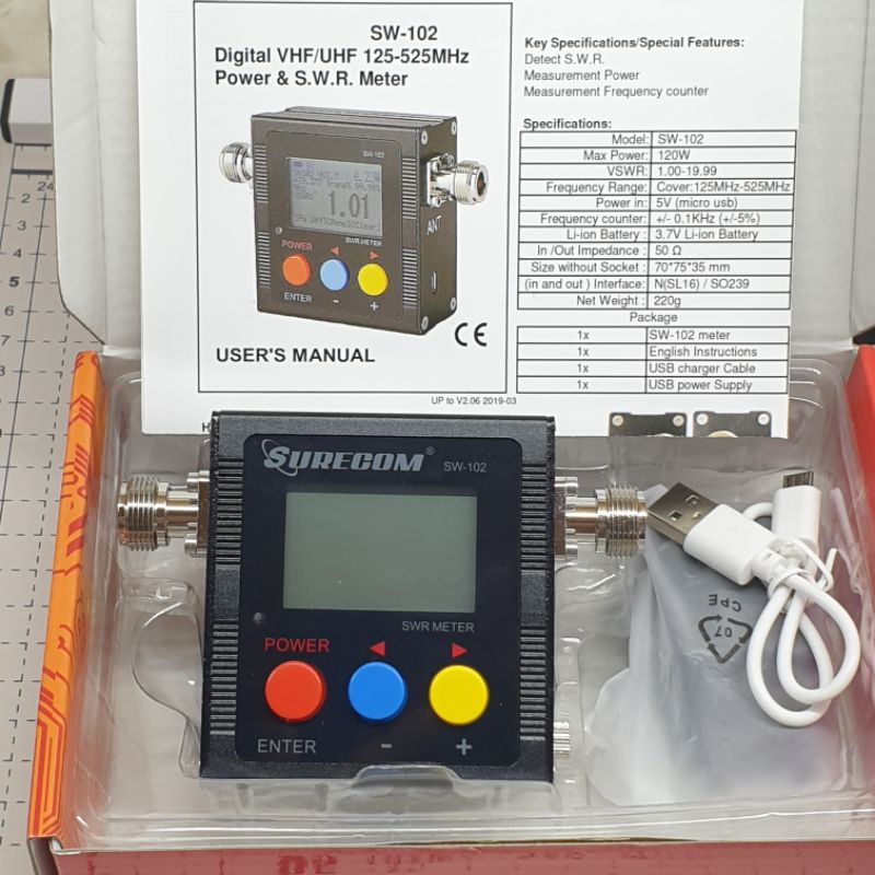 SWR Surecom SW-102 Digital VHF UHF 125-525MHz Power Meter SW102