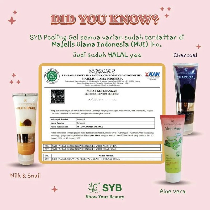 SYB Facial Glowing Peeling Gel Aloe Vera - SYB Peeling Gel Charcoal - SYB Peeling Gel Milk & Snail - Pembersih Daki dan Kotoran