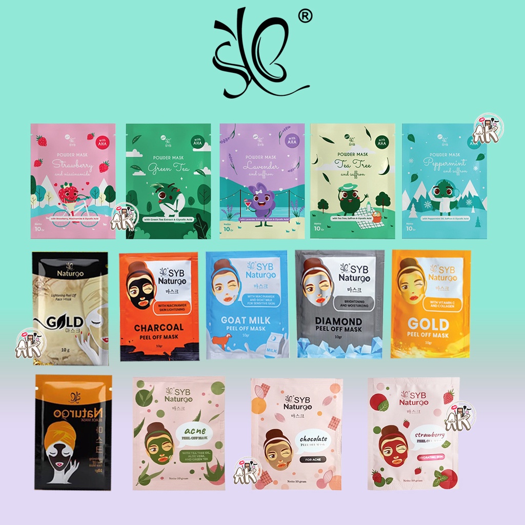 SYB MASKER PEEL OFF & POWDER MASK SYB NATURGO / ACNE / STRAWBERRY / CHOCOLATE / TEA TREE / PAPERMINT / LAVENDER (ECER)
