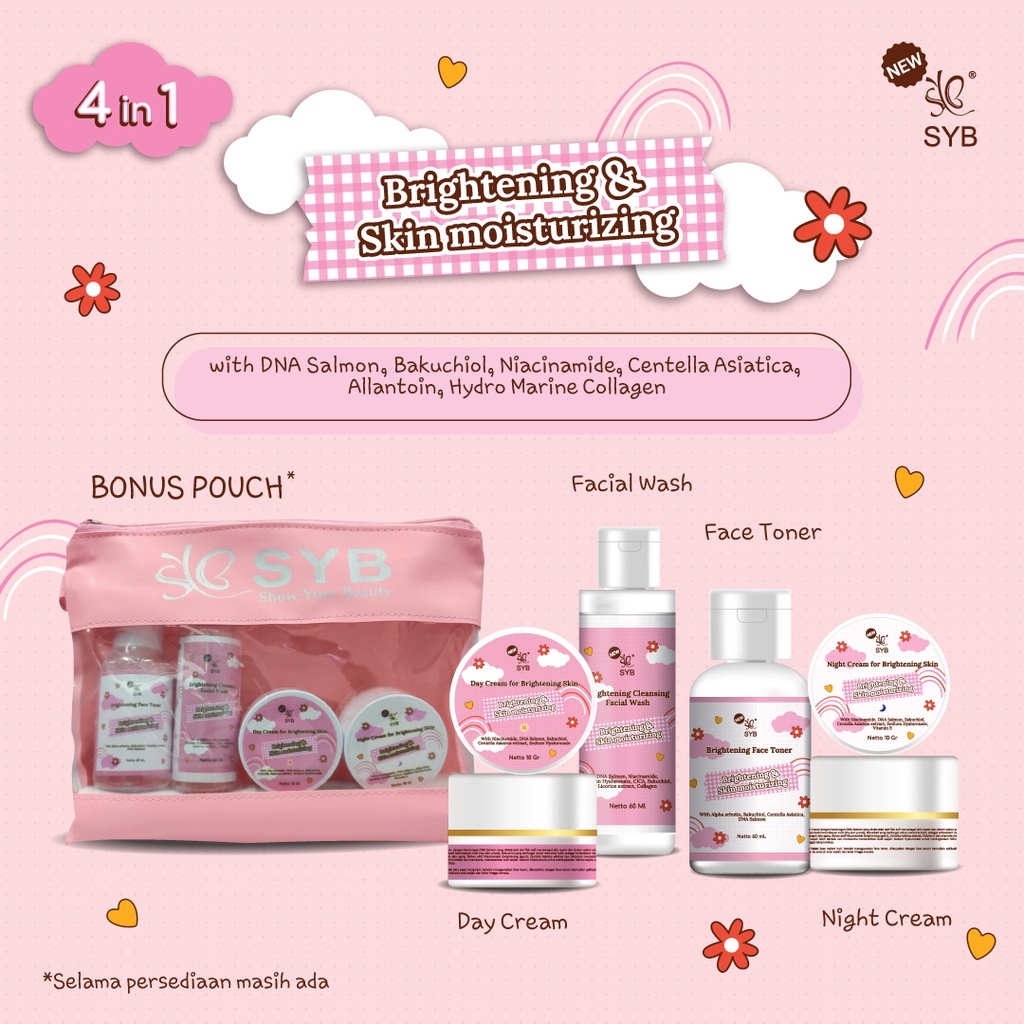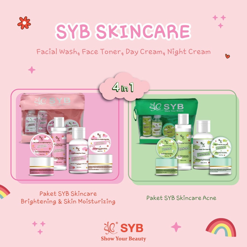 SYB SKINCARE PACK 4IN 1 - Syb Brightening & Skin Moistturrizing / Bye Acne BPOM