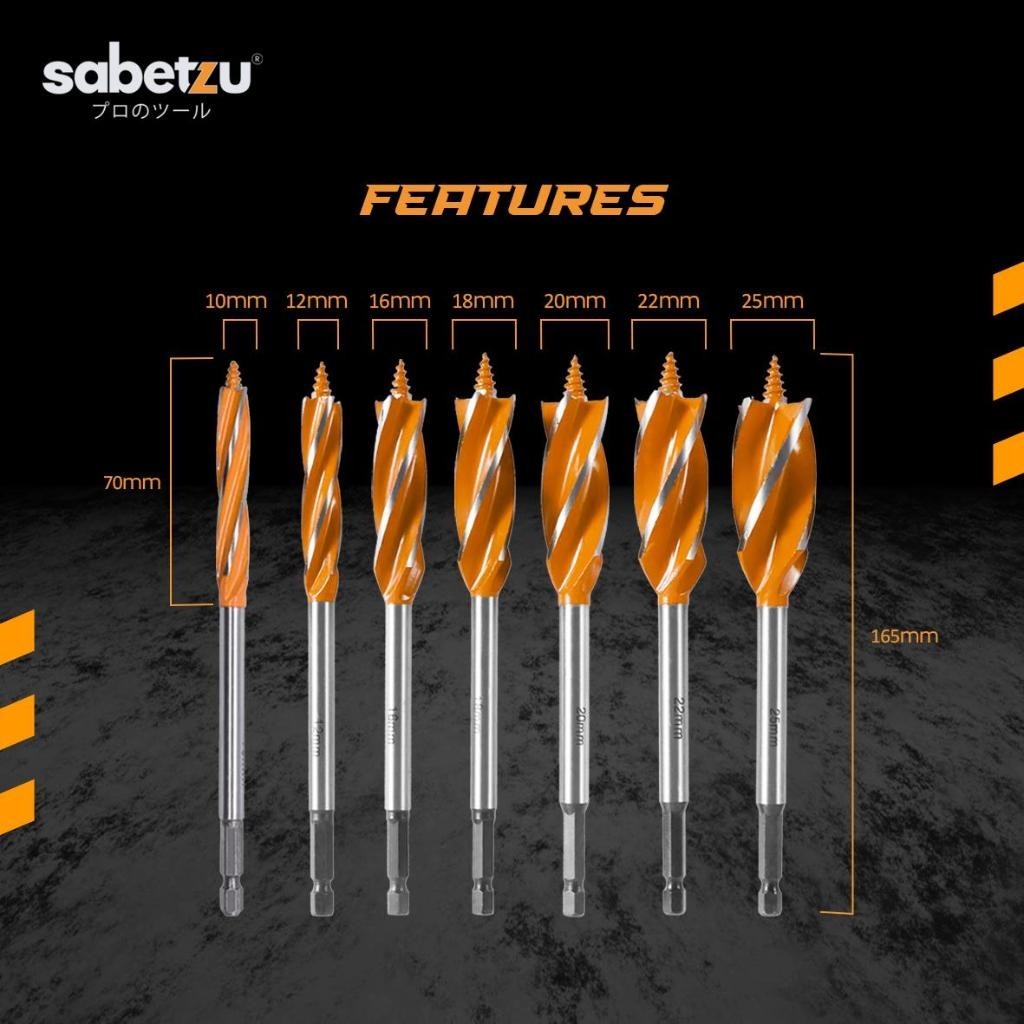 Sabetzu Mata Bor Kayu 10mm 12mm 16mm 18mm 20mm 22mm 25mm Auger Bit Three Point Four Slot Wood Working Drill Hex Handle 1/4" As Hexagon 6.35mm - Mata Bor Kayu Plastik Plywood MDF Triplek Multiplek Paralon PVC Kerajinan Kayu Pertukangan Auger Drill Bit