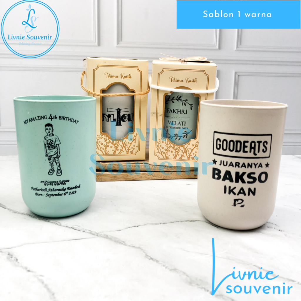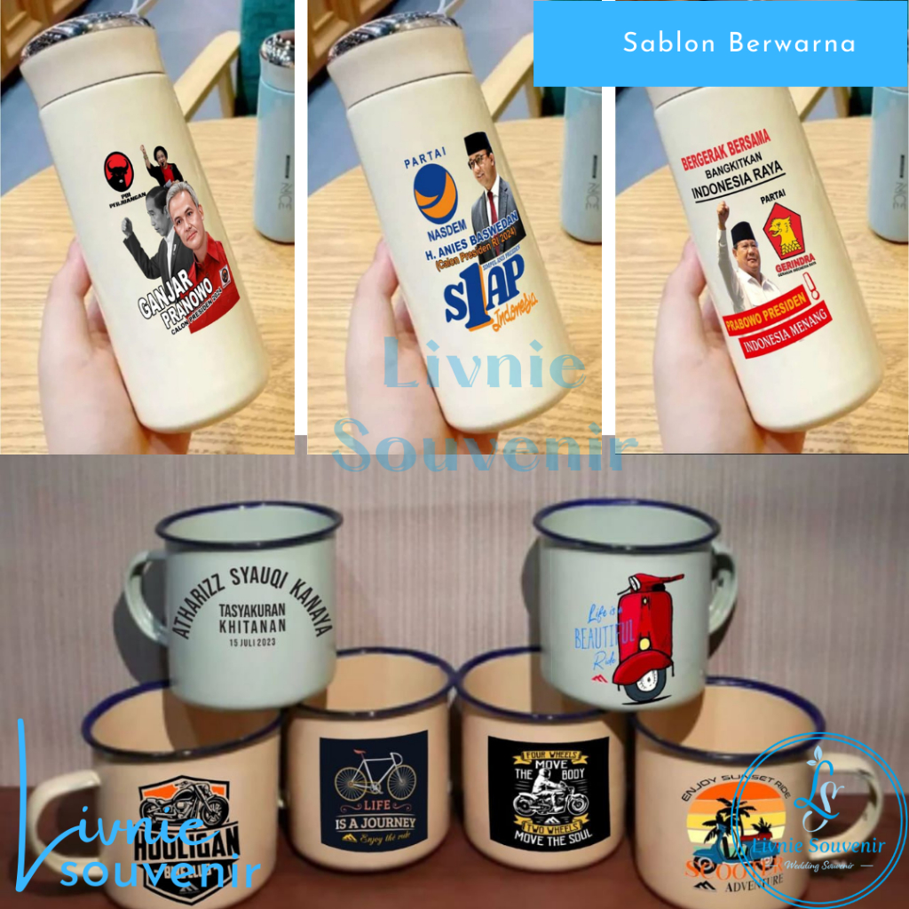 cas Sablon sendok garpu sumpit box pensil, Gelas, Botol souvenir dll