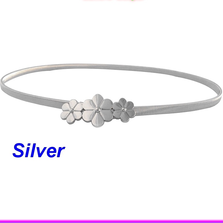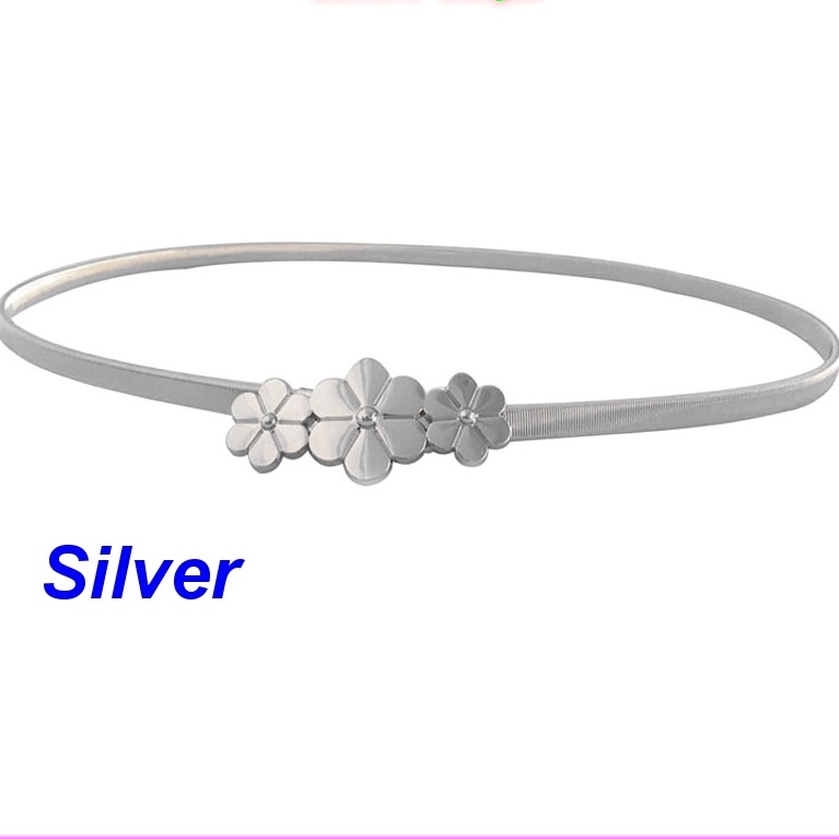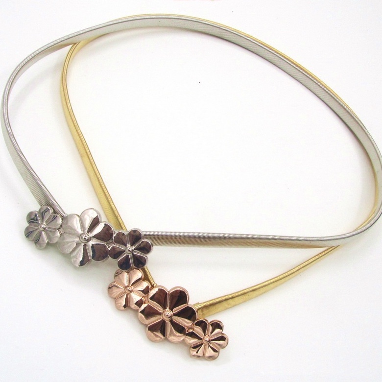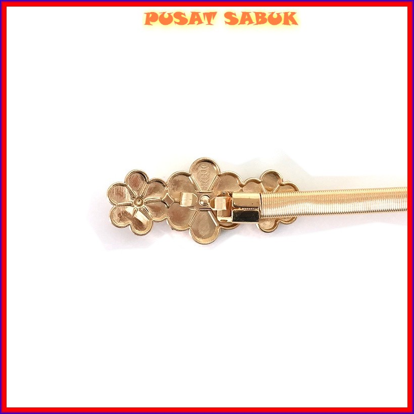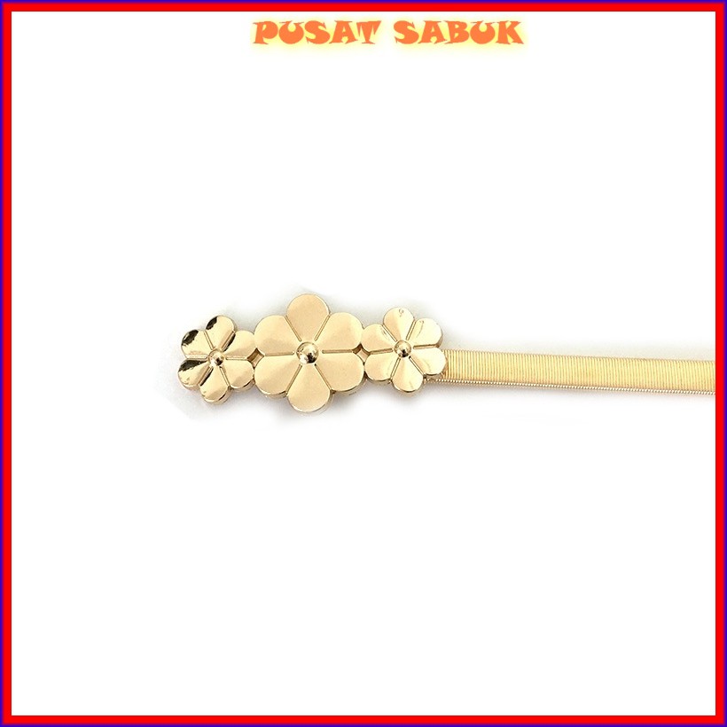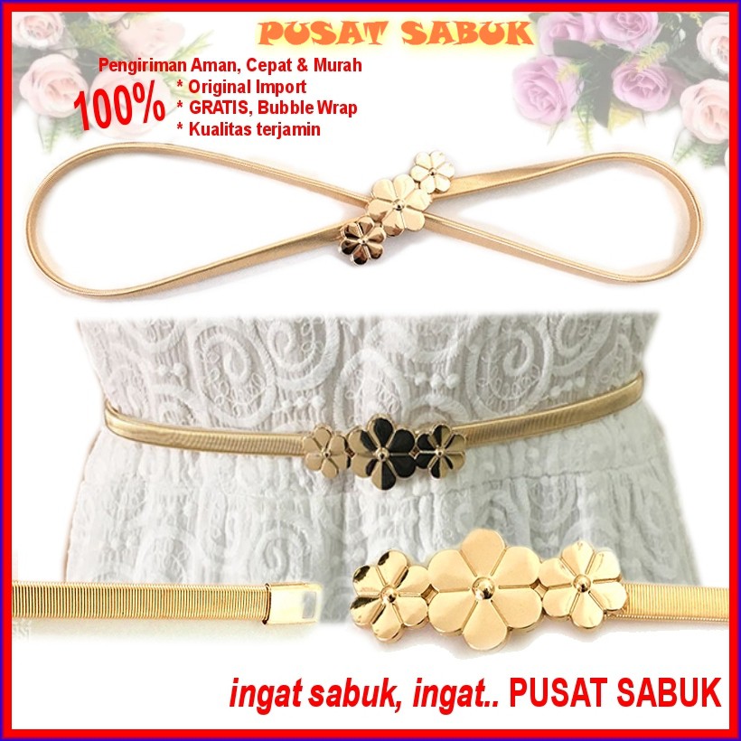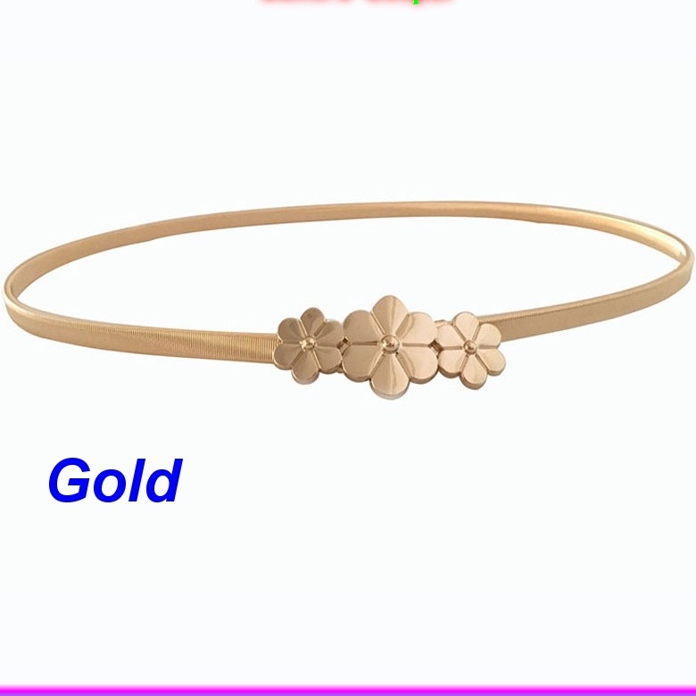 Sabuk Elastis Wanita Fashion Gesper Cewek Ikat Pinggang Belt Gold Daun Emas Stretch Pita obi rantai