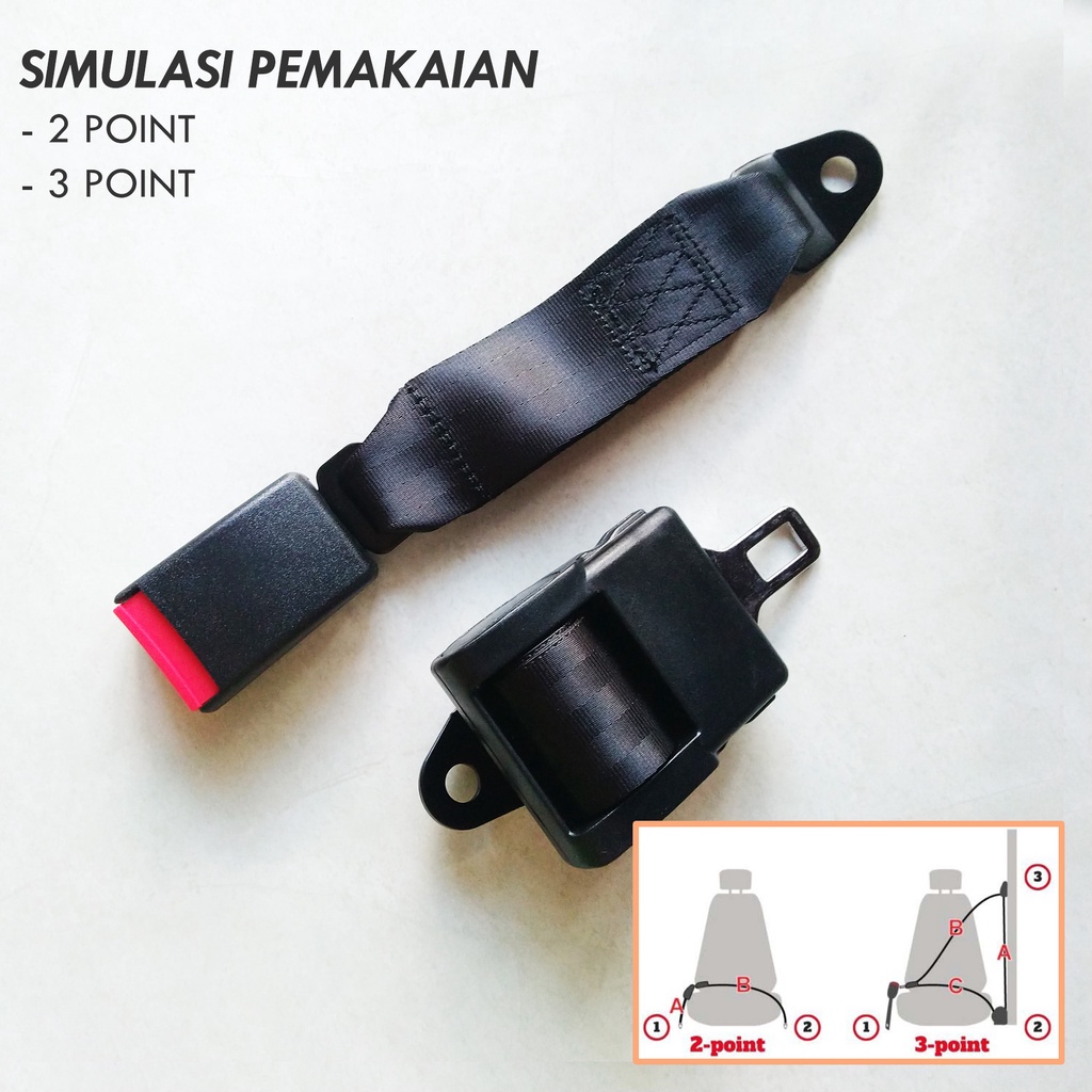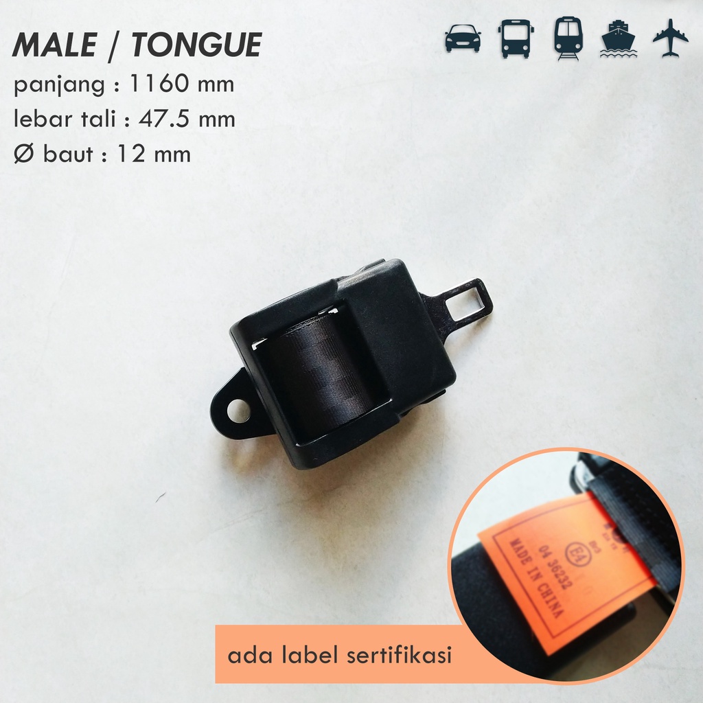 Sabuk Pengaman Safety Seat Belt 2 Titik Otomatis Auto Mobil Universal Label Logo Sertifikat E4 E8 E-mark Standar Eropa - di atas grade SNI