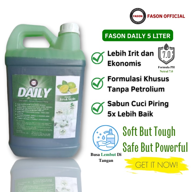 Fason Daily Sabun Cuci Piring Kulit Sensitif Organik 5Liter Tanpa Petrolium (Non SLS)