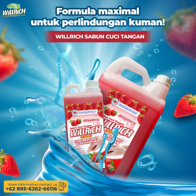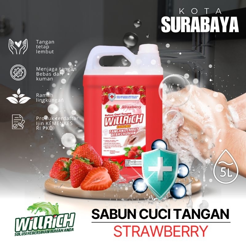 Sabun Cuci Tangan Antibacterial Handsoap Willrich Varian Strawberry Pengiriman Instant dan Sameday Surabaya