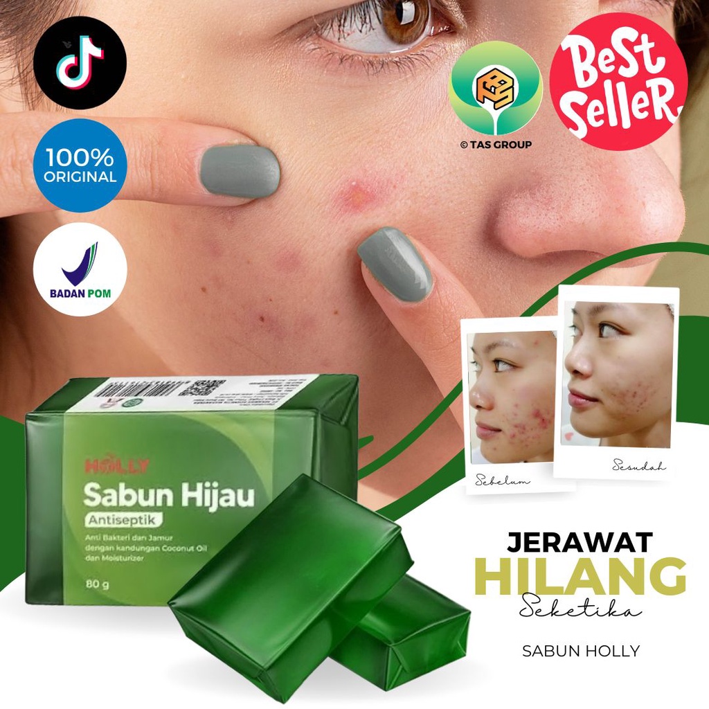 Sabun Hijau Holly 80G Antiseptik UV Whitening Sabun Panu Gatal Kulit Selagkangan Penghilang Bekas Jerawat Di Punggung Paling Ampuh 100% Original