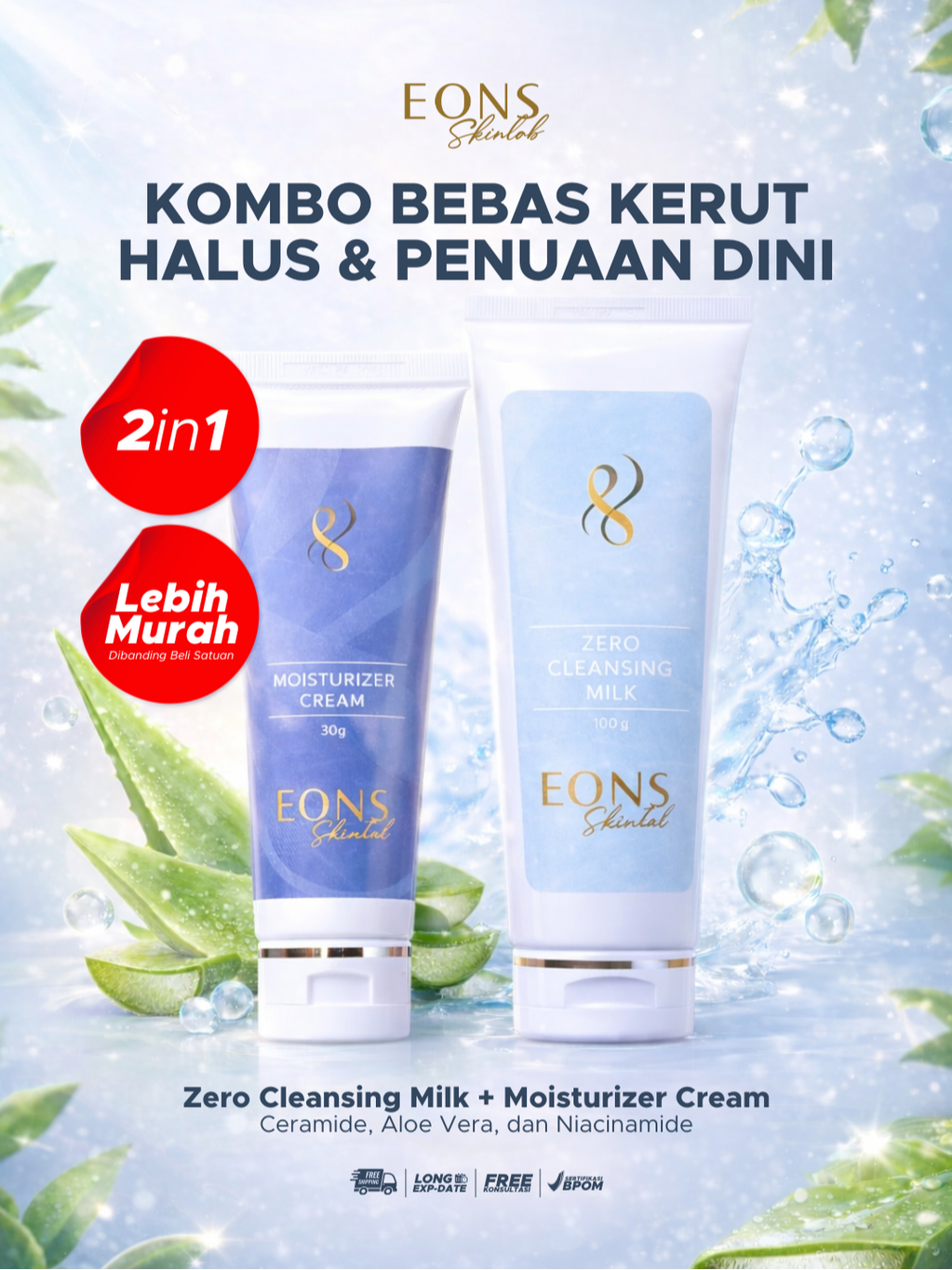 EONS Skinlab Cleansing Milk + Moisturizer Cream – Paket Face Wash & Moist
