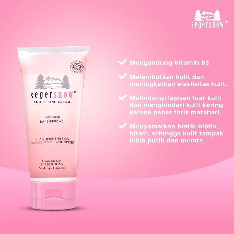 Seger Snow Lightening Cream Halal BPOM 60gr Krim Wajah Soft and Bright Mencerahkan Wajah