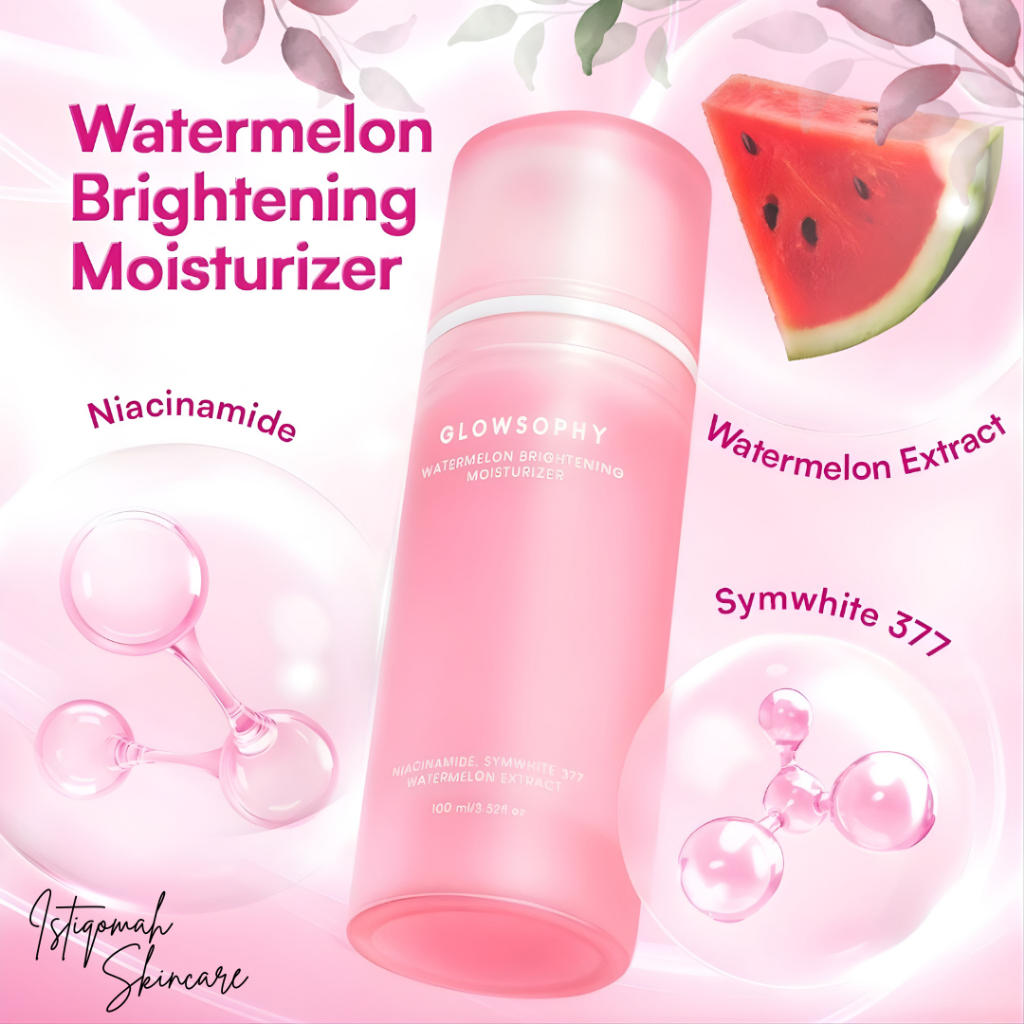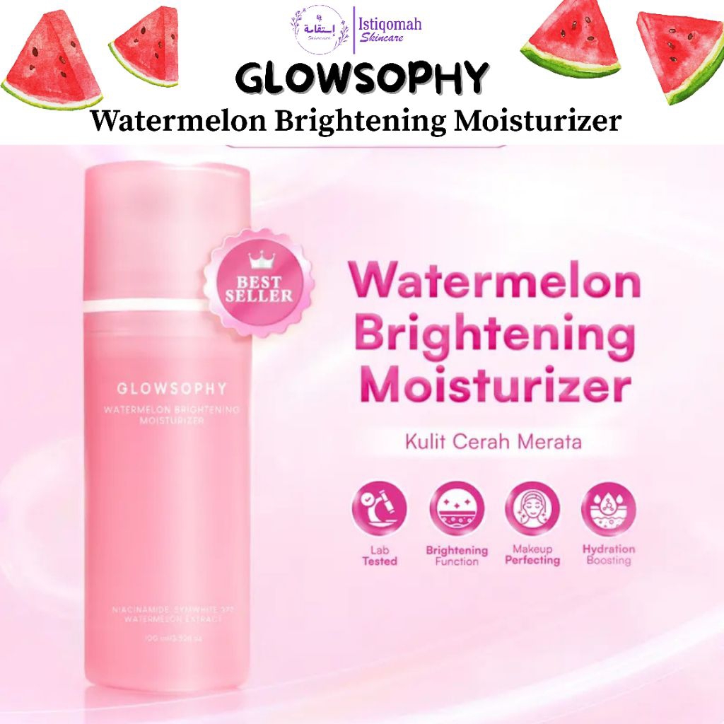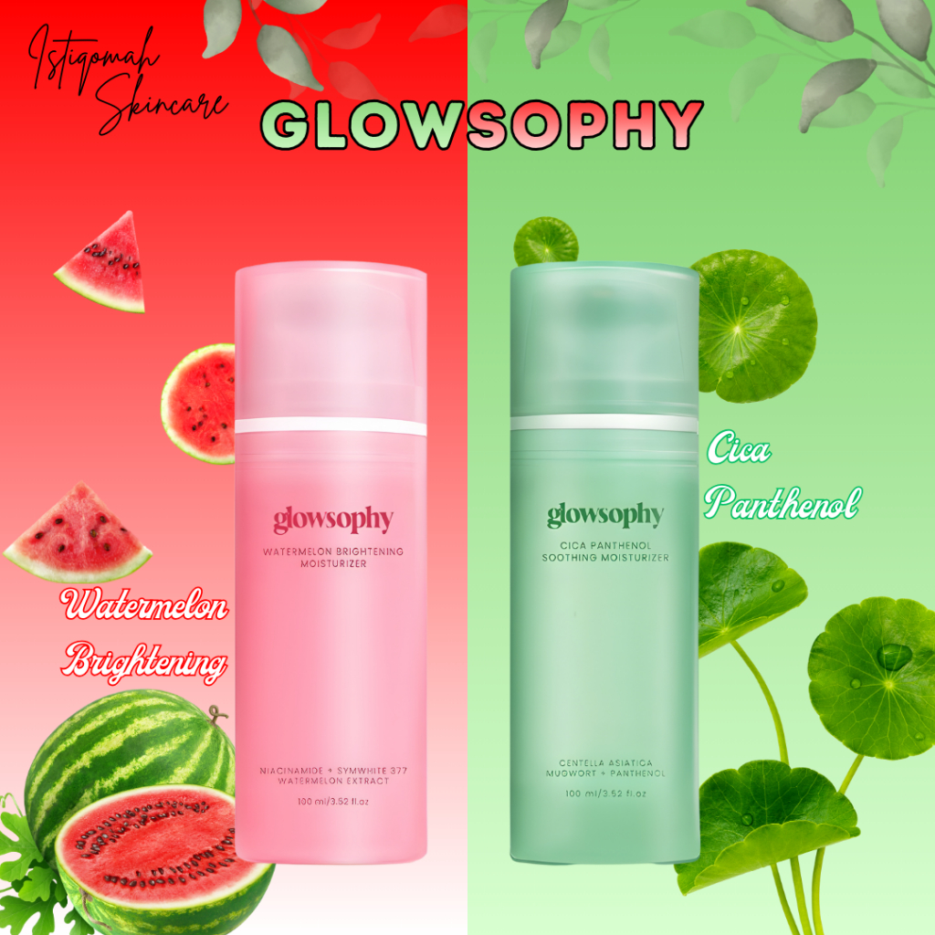 GLOWSOPHY Watermelon Brightening & Cica Panthenol Soothing Moisturizer Gel 100ml - Pelembab Wajah Ringan Mencerahkan Kulit - Pelembab Wajah Ringan Kulit Berjerawat dan Sensitif