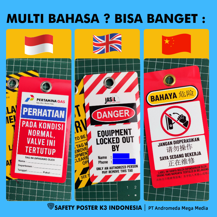 Safety Tag LOTO : Bahaya, Aman, Tidak Aman, Valve Merah, Valve Hijau, Scaffolding Merah, Perancah, Valve Normal, Bahaya Mesin, Isolasi, Scaffolding Hijau, Kuning Hitam, Outdoor Anti Air.