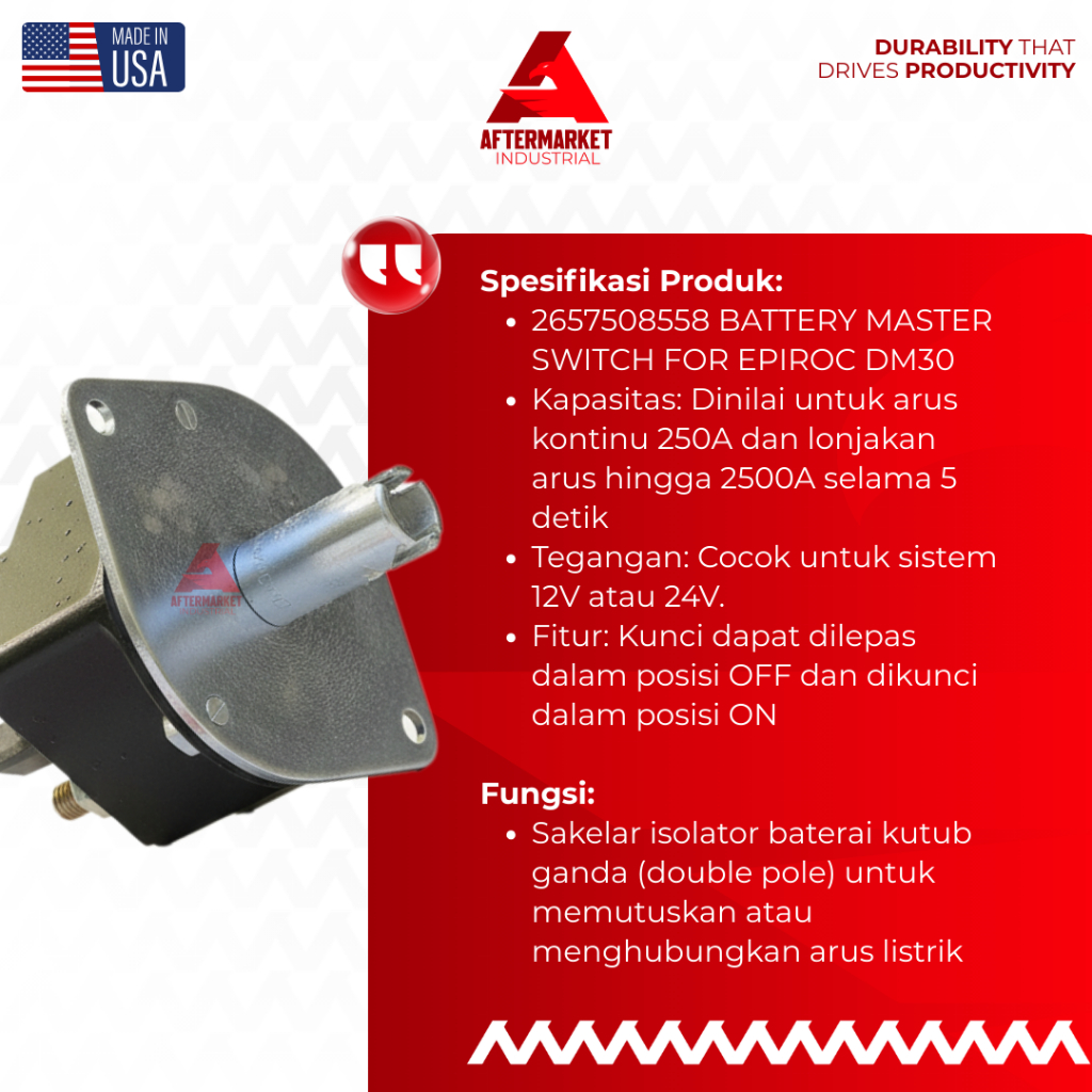 Sakelar Pemutus Arus Baterai Battery Master Switch 2657508558 Kunci Dapat Dilepas