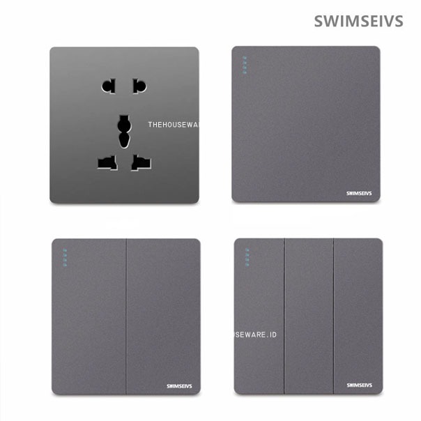 Saklar Dinding Soket 5 PREMIUM GRAY Brushed 1/2/3 Gang 1 Way Stop, Stop Kontak/ Colokan dinding listrik Univesal