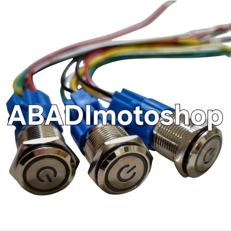 Saklar LED stainless tombol on off push button metal plus socket dan kabel