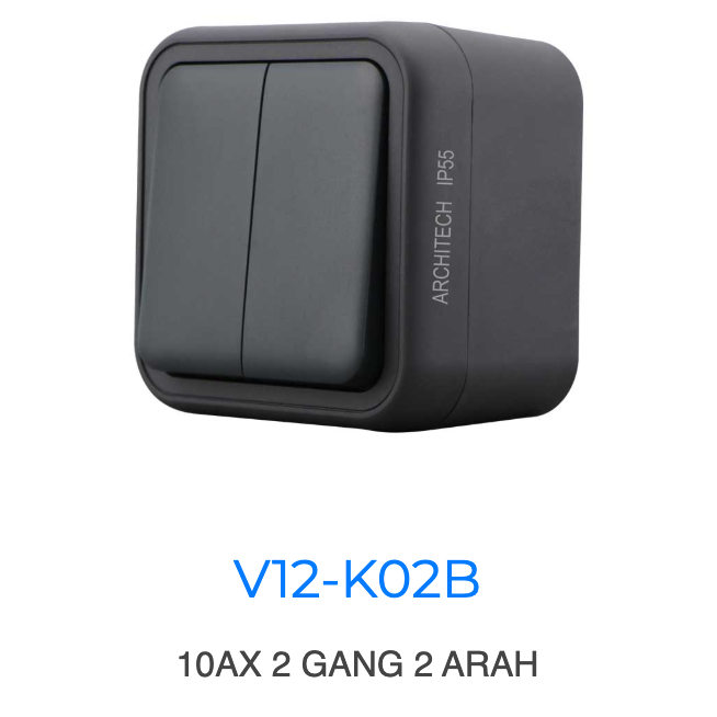 Saklar Stopkontak Outdoor ARCHITECH V12 SERIES PACIFIC Black HITAM Anti Air / saklar Stop Kontak Outbow Hitam / Waterproof
