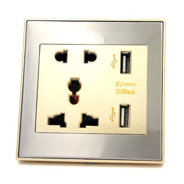 Saklar colokan dinding wallplug universal port and 2 USB port - white gold