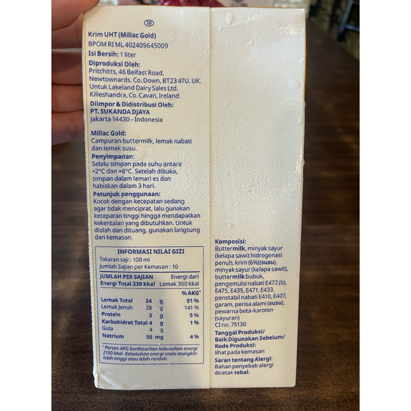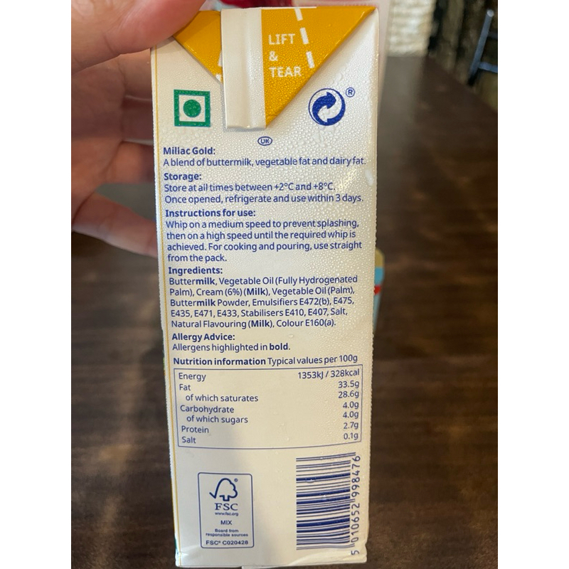 Sale!! Millac Gold Whipping, Cooking & Pouring Cream 1lt..whipped cream milac gold