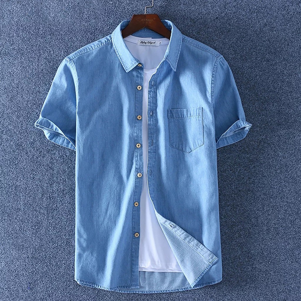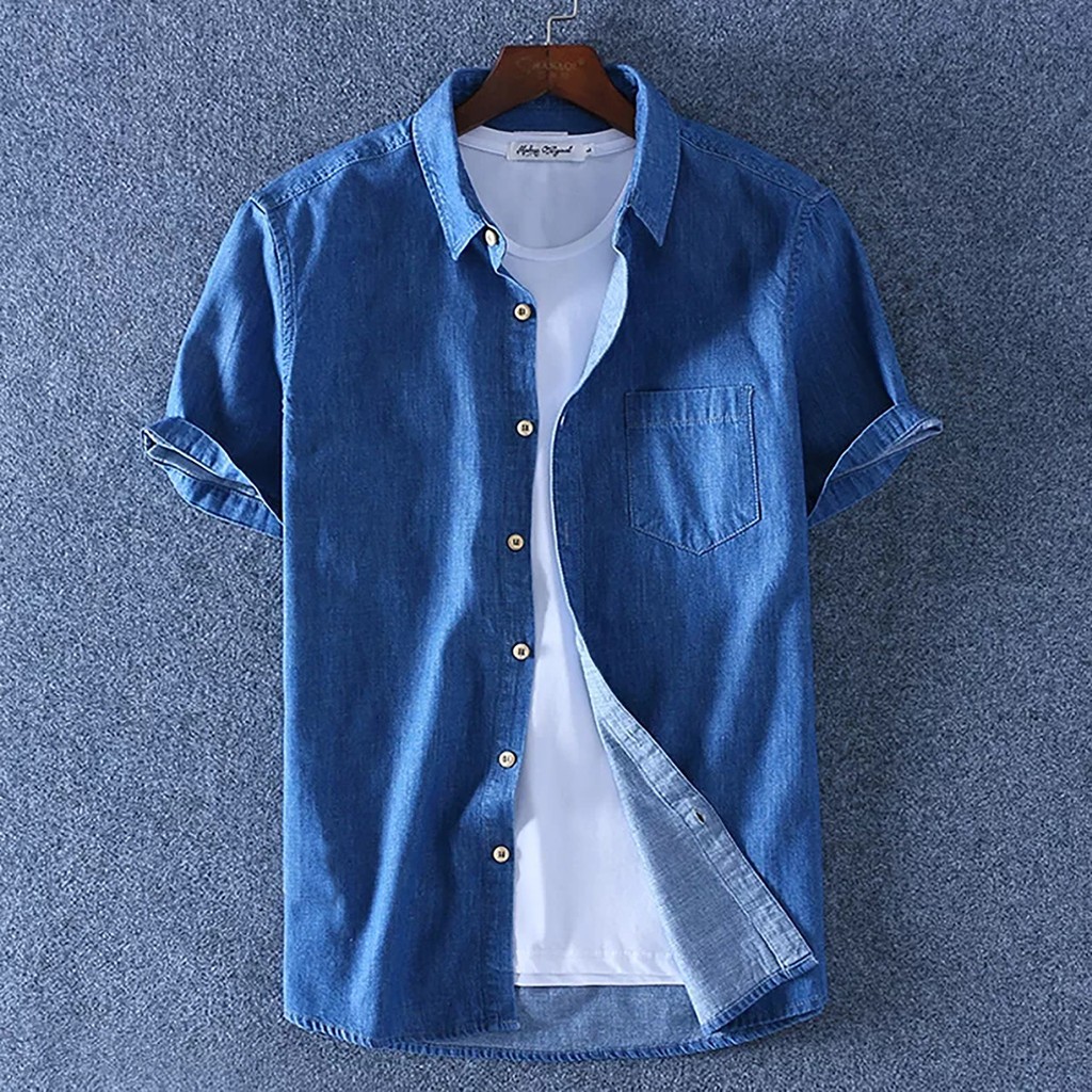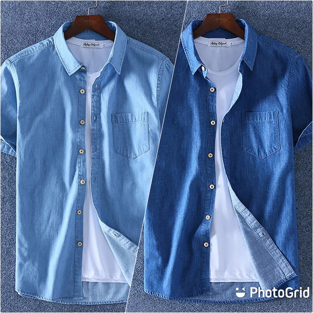 Sale Kemeja Jeans Bozz Baju Pria Distro Kasual Atasan cowok Trendy Pakaian Cowo Lengan Pendek Elegan