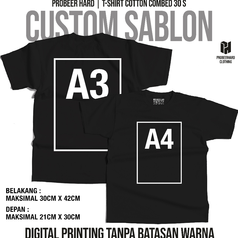 Sale PROBEERHARD Kaos Sablon Custom Design Sendiri SABLON 2 SISI Bebas Request Sablon SABLON DTF