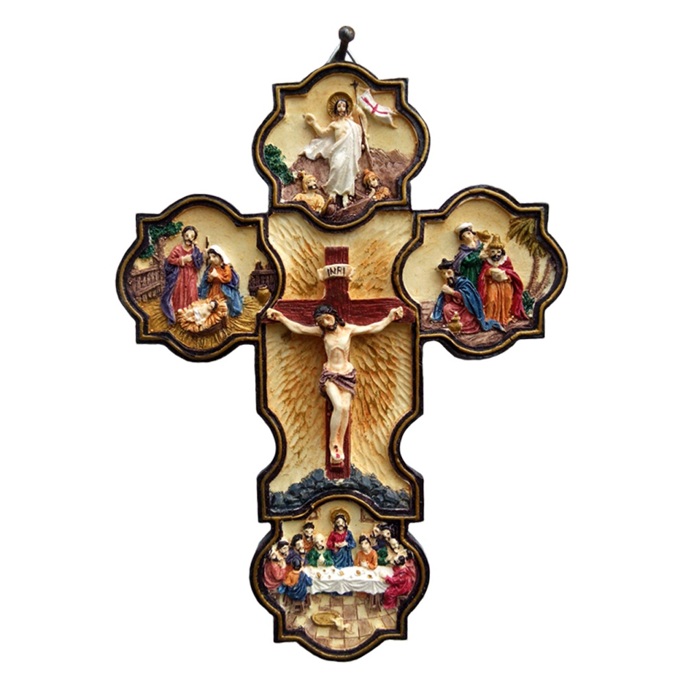 Salib Gantung Rohani Katolik Kisah Hidup Yesus 18cm Pajangan Salib Dinding Dekorasi Rumah