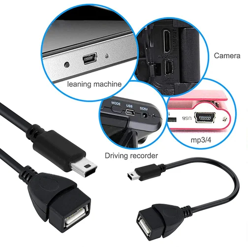 Sambungan Cable Mini USB OTG 5-Pin Male to USB 2.0 Female On The Go Adapter Kabel Mini USB Ke USB