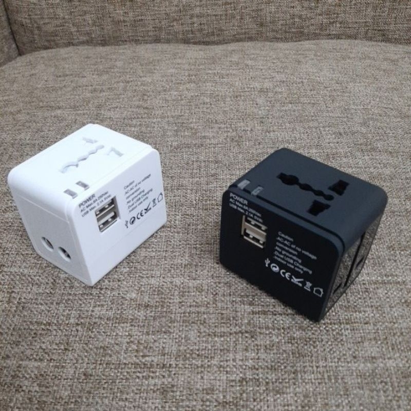 Sambungan Charger Universal Travel Adapter Dual USB Port colokan listrik adapter charger umroh luar negri Amerika, Inggris, Eropa, Asia, Australia , China , Arab