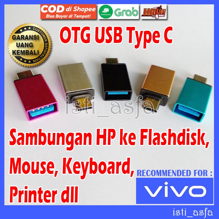 Sambungan OTG USB Type C untuk HP VIVO V50 V40 V30 V29 V27 PRO Y39 Y38 Y36 Y29 Y27 Y22 Y04 Y03 Y18 Y17 Y300 Y200 Y100 Sambungan Ponsel Android ke Flashdisk Mouse Keyboard Flasdisk Printer Barcode Scanner Bluetooth Stick Game Controller