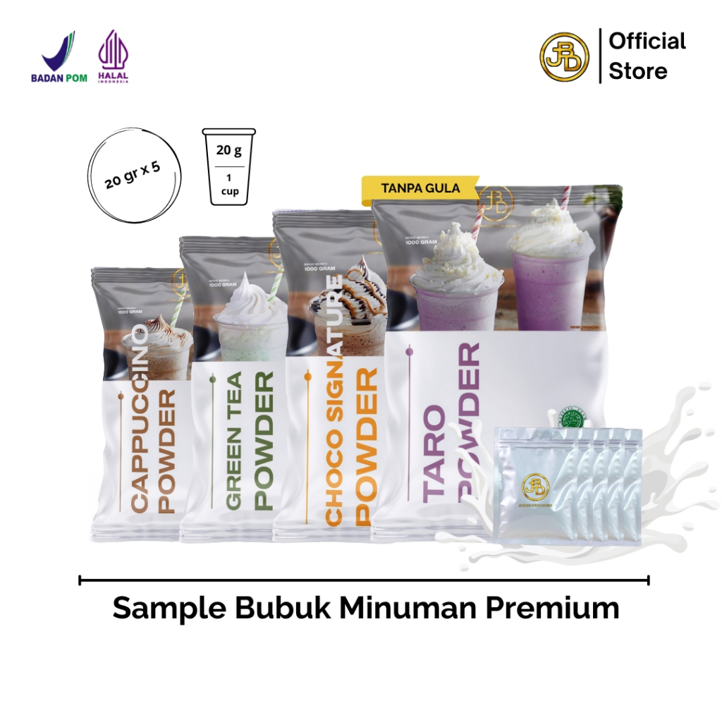 Sample Bubuk Minuman Premium Rasa Milkshake GREEN TEA TARO CAPPUCINO Halal 20gr Siap Seduh | JBD