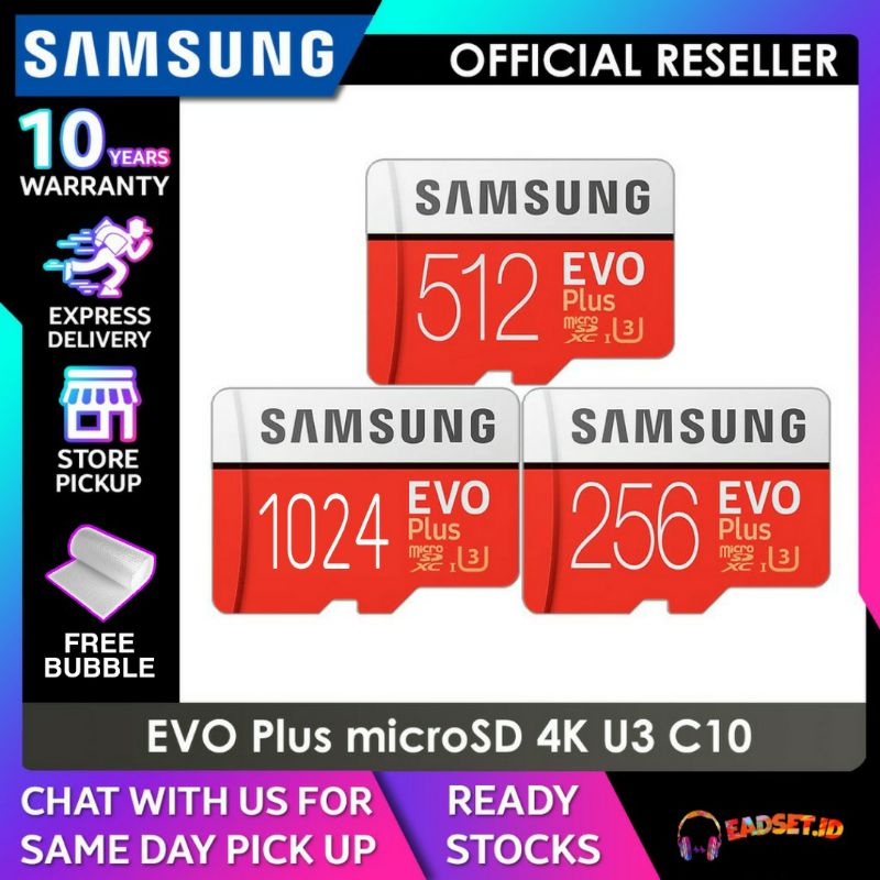 Samsung Evo Plus MicroSD Card U1 32GB 64GB 4K U3 V30 128GB 256GB 512GB 1TB MEMORI MMC MEMORY CARD - Samsung EVO Plus 256GB 500GB 1TB 1000GB microSDXC Card w/Adapter (Up to R:100MB/s, W:90MB/s with UHS-1 | Grade 3, Class 10)