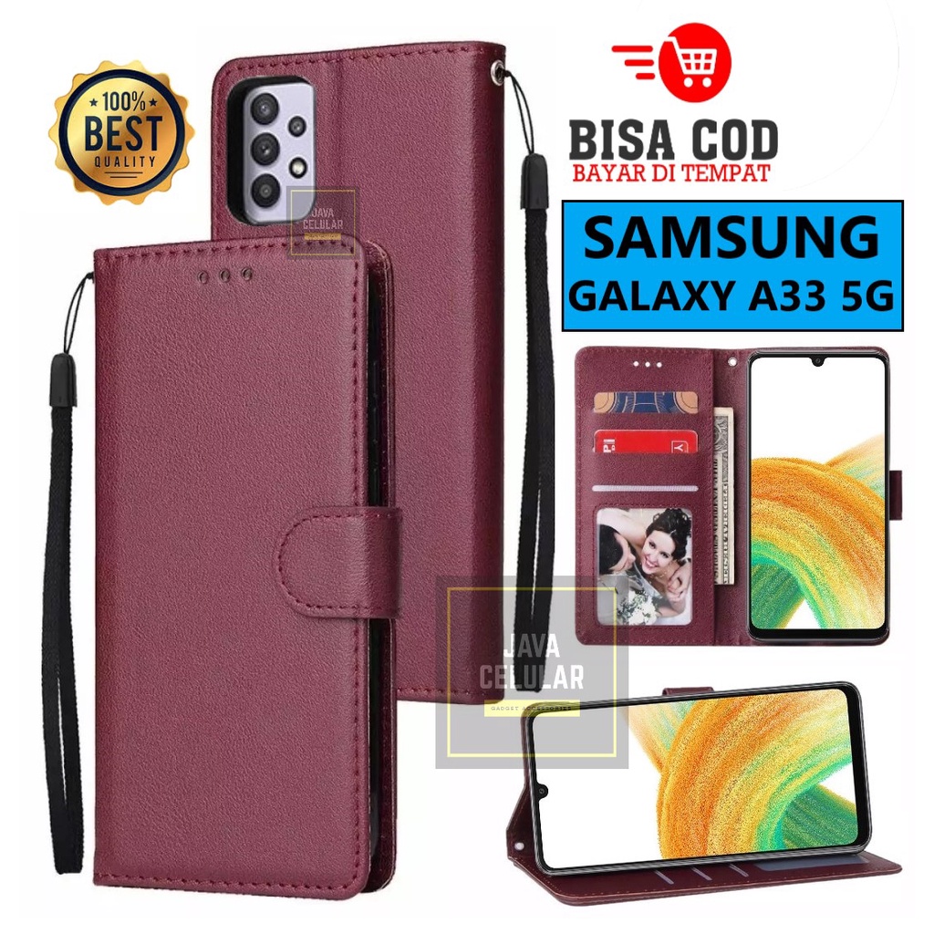 Samsung Galaxy A33 5G Flip Case Kulit - Casing Dompet Case Wallet Leather Flip Case Samsung Galaxy A33 5G Casing hp leather dompet kulit Flip Cover Wallet