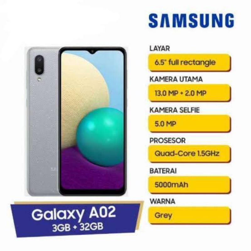 Samsung galaxy A02 ram 3/32gb new garansi SEIN 1 tahun resmi indonesia
