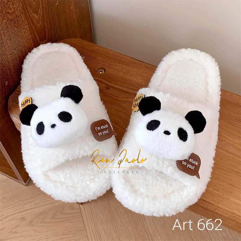 Sandal Bulu Slipper Sendal Kamar Rumah Karakter Panda Cute Lucu Tebal Halus Lembut Rien Paolo Premium 662