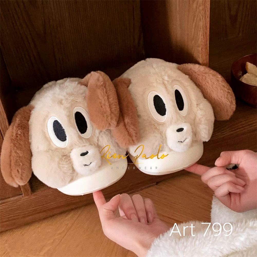 Sandal Bulu Slipper Sendal Rumah Karakter Doggy Cute Lucu Tebal Halus Lembut Premium Rien Paolo 766