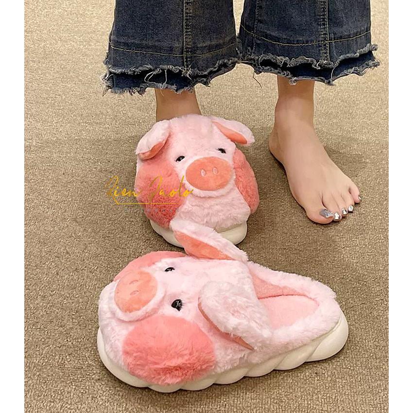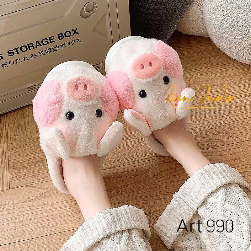 Sandal Bulu Wanita Slipper Pig Cute Sendal Rumah Tebal Halus Lembut Premium Rien Paolo 990