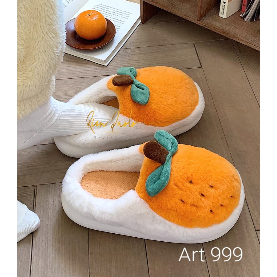 Sandal Bulu Wanita Slipper Sendal Kamar Rumah Fruit Orange Strawberry Panda Bear Cute Lucu Tebal Halus Lembut Premium Rien Paolo 668