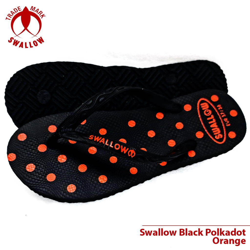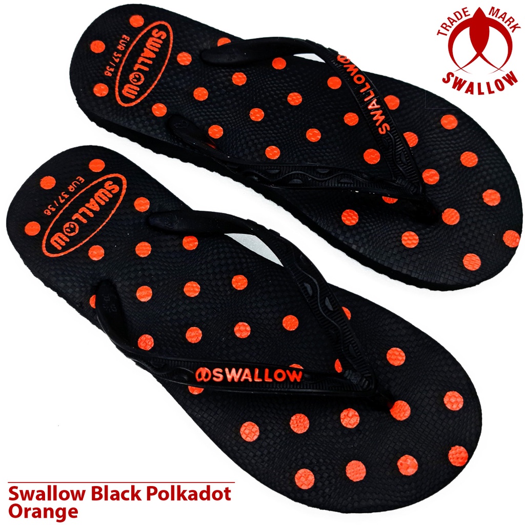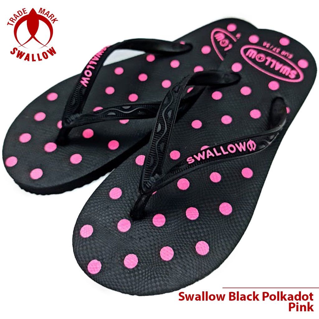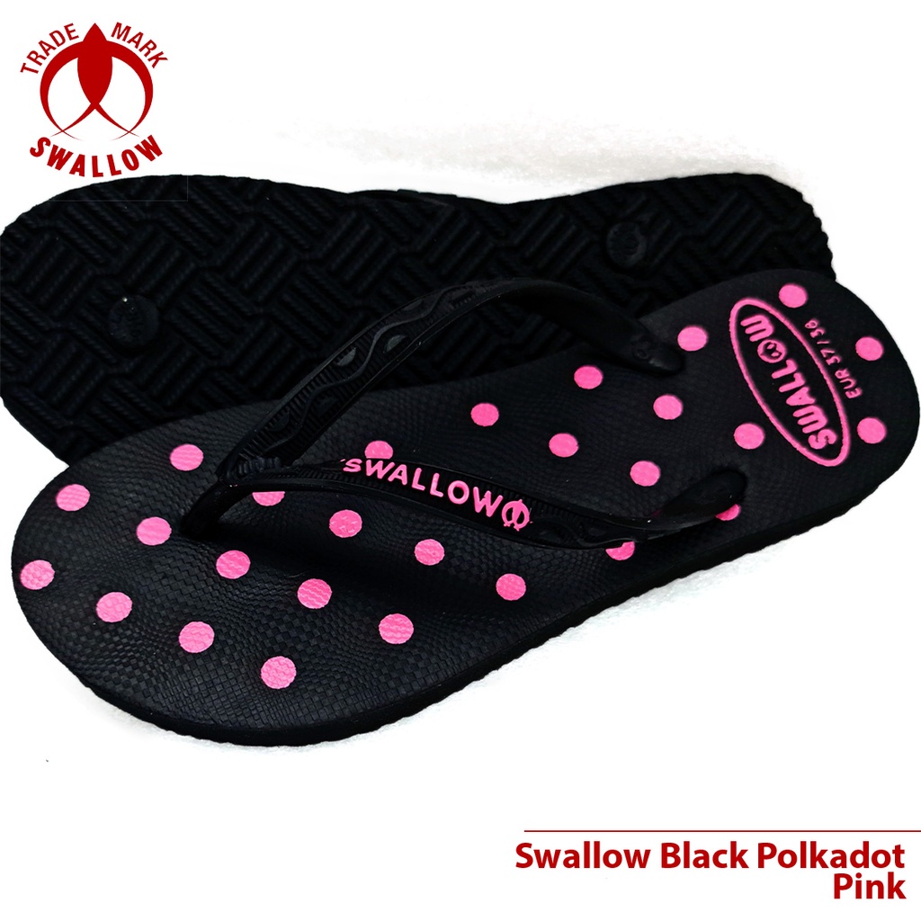 Sandal Jepit Karet Wanita Swallow Black Polkadot - Flip Flop Sandal perempuan Terbaru - Sandal Jepit BLACK PINK POLKADOT Dan Warna Lain Anti Slip [SWLTRAD 03]