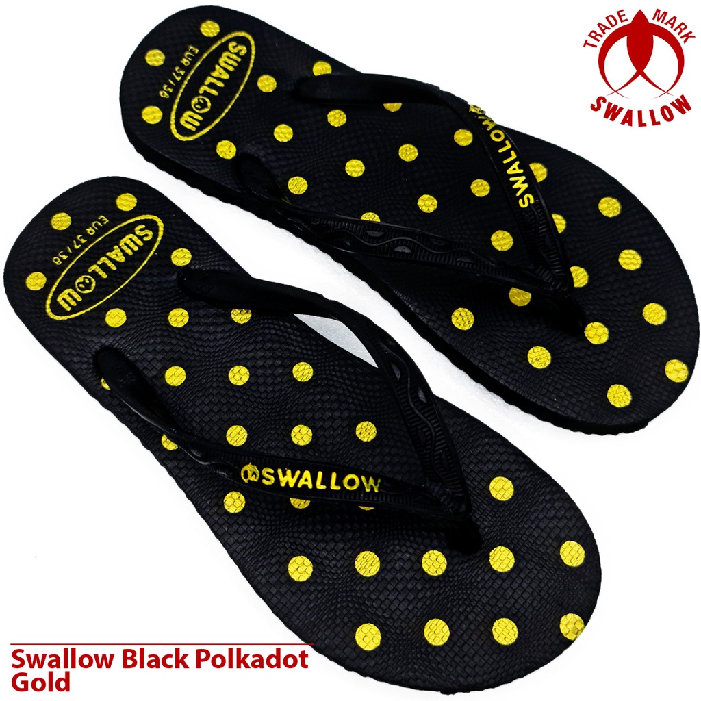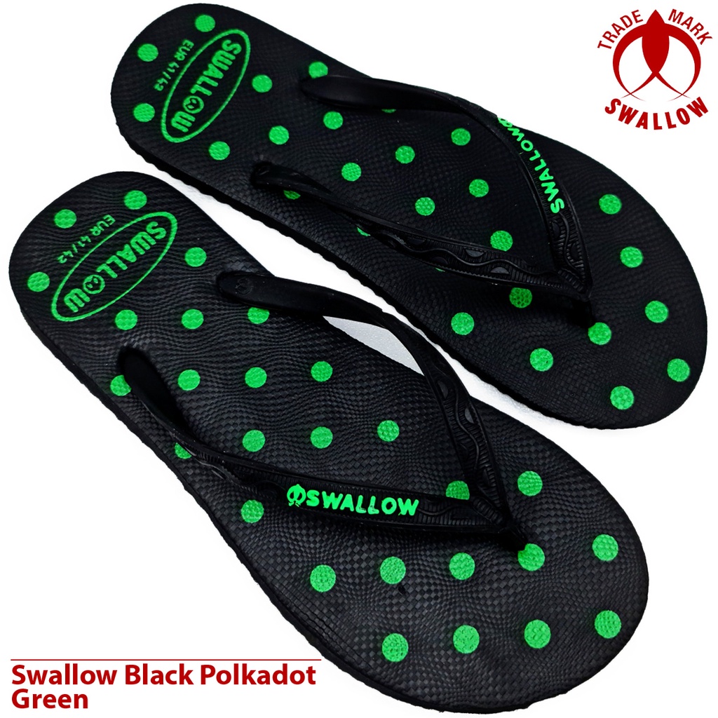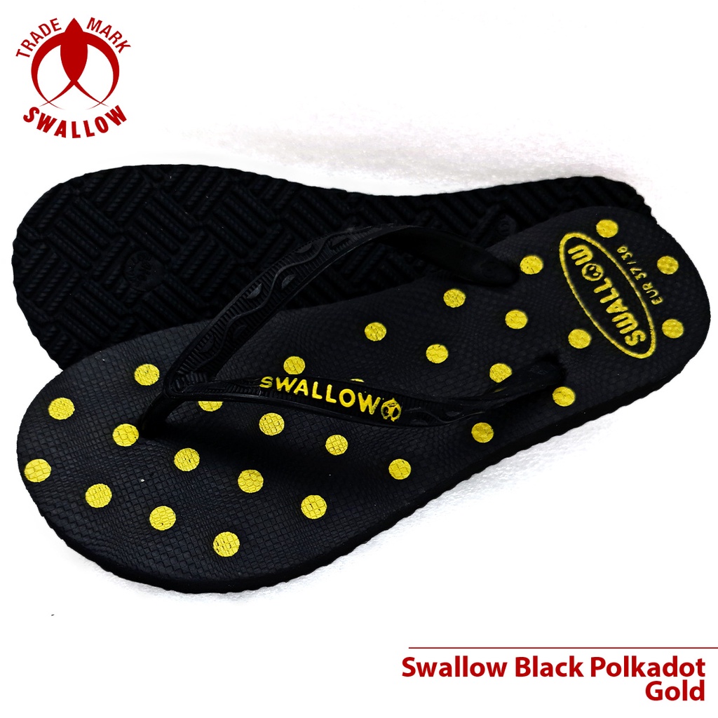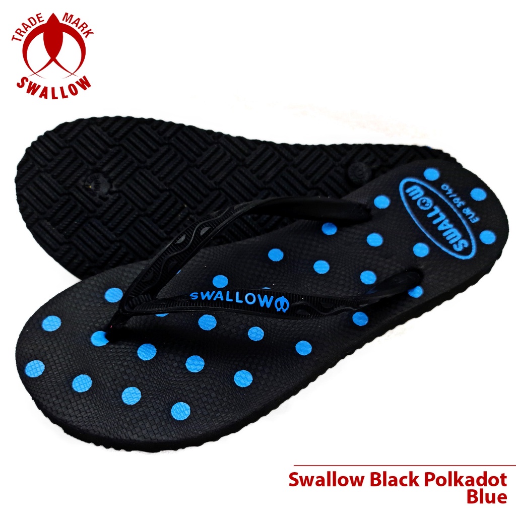 Sandal Jepit Karet Wanita Swallow Black Polkadot - Flip Flop Sandal perempuan Terbaru - Sandal Jepit BLACK PINK POLKADOT Dan Warna Lain Anti Slip [SWLTRAD 03]