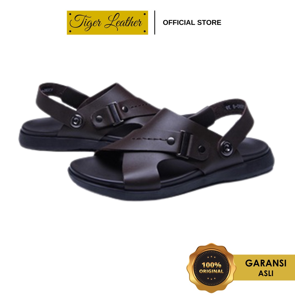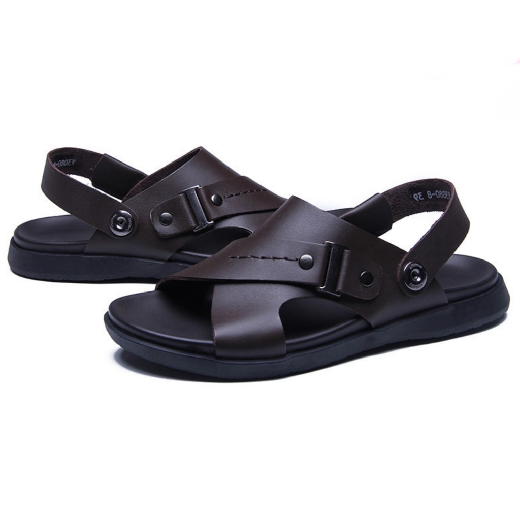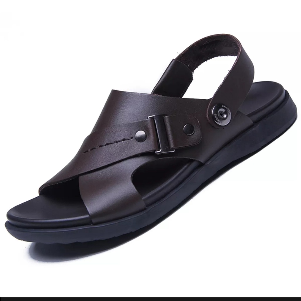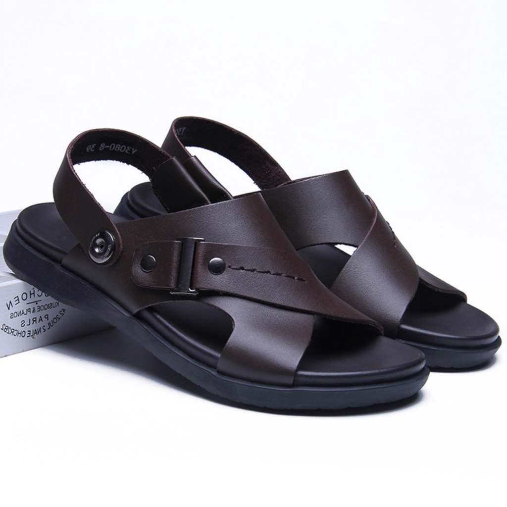 Sandal Pria Kulit Impor Slip On Trendy Terbaru Model Open Toe