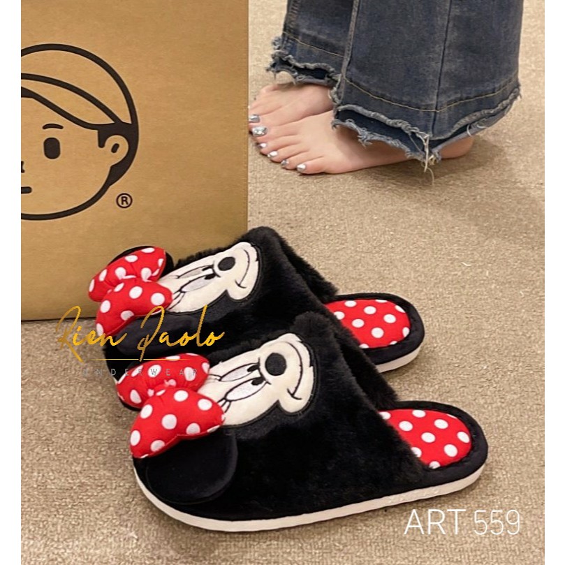 Sandal Rumah Mickey Mouse Slipper Sendal Kamar Minnie Disney Lucu Tebal Halus Lembut Premium Rien Paolo 558