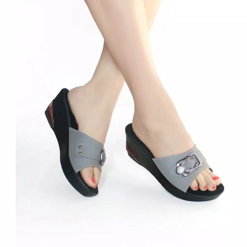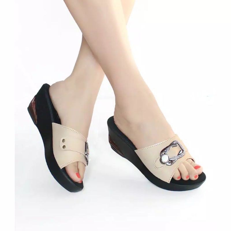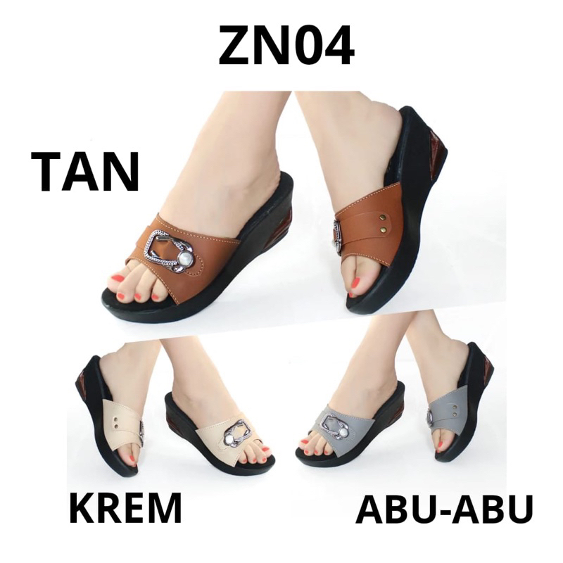 Sandal Sendal Wanita Wedges Cewek Casual Selop / Slop Hak Tinggi Ibu Ibu Kondangan Kulit Sintetis Murah Terbaru ZN04