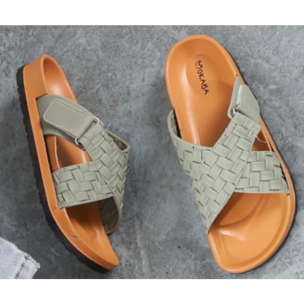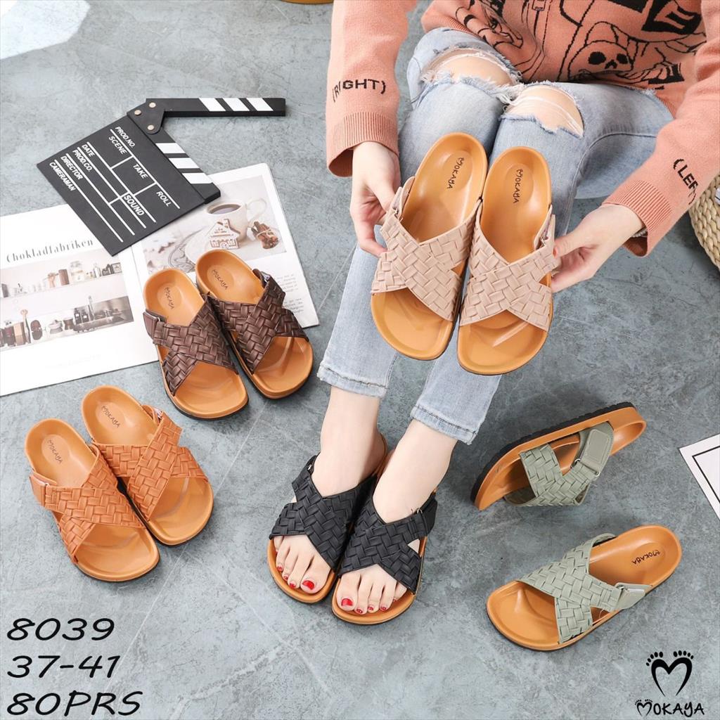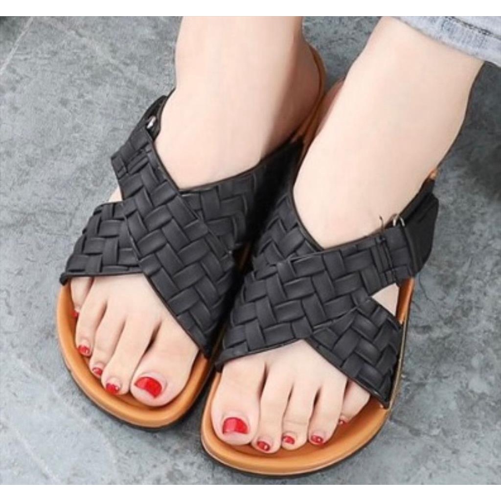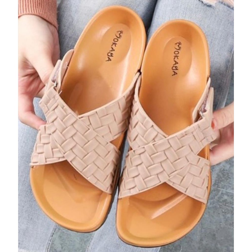 Sandal Slop Jelly Wanita Ban Silang Motif Anyam Gesper Kretek Super Keren Mewah Cantik Elegant Import Mokaya / Size 37-41 (8039)
