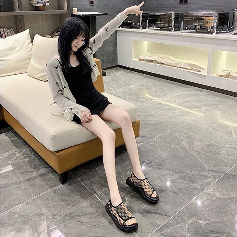 Sandal Slop Wanita Sepatu Cewek Bukaan Atas Bahan Transparan Sejuk Korean Style yang Trendy Dan Kece