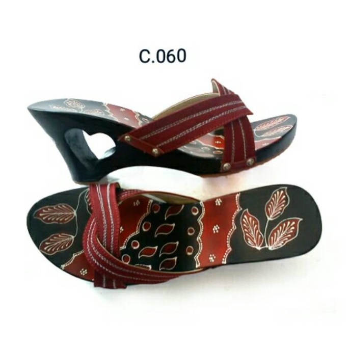 Sandal Wanita Wedges Vintage Airbush Hak 7 cm Sole Sendal Kelom Geulis Tasik Cantik C060 Unik