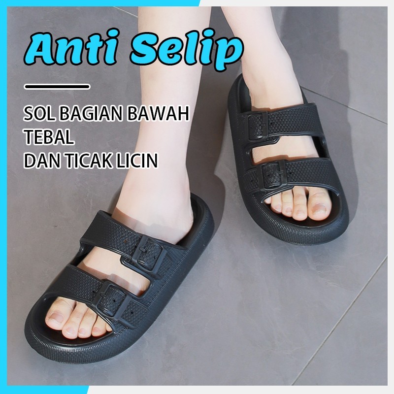 Sandal karet wanita gesper terbaru 2025 Sendal jelly kasual wanita kekinian Sandal slop cewek import anti slip soft slipper