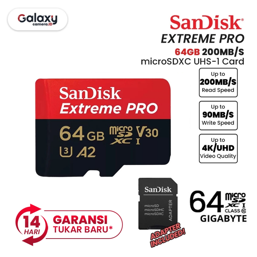 Sandisk MicroSD Extreme Pro 64GB 200mb/s + Adapter Memori HP Original