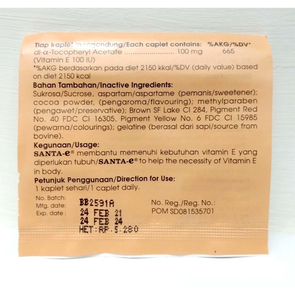 Santa e- Vitamin E/Santa E 100mg (4 tablet per Strip)